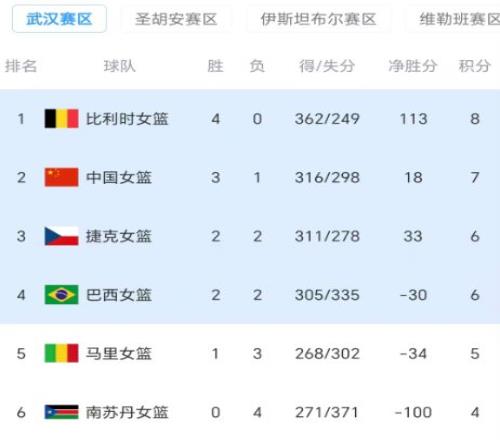 北京時(shí)間3月15日晚上,女籃世界杯預(yù)選賽小組賽武漢賽區(qū)第四輪全部結(jié)束,中國女籃84-74險(xiǎn)勝捷克女籃、比利時(shí)女籃102-64大勝南蘇丹女籃、巴西女籃76-73擊敗馬里女籃。至此,中國女籃提前一輪出線、南蘇丹女籃提前一輪出局。