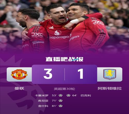 B費助攻雙響破小貝紀錄,舍什科近5輪4球,卡塞米羅、庫尼亞建功,曼聯(lián)送維拉英超三連敗。