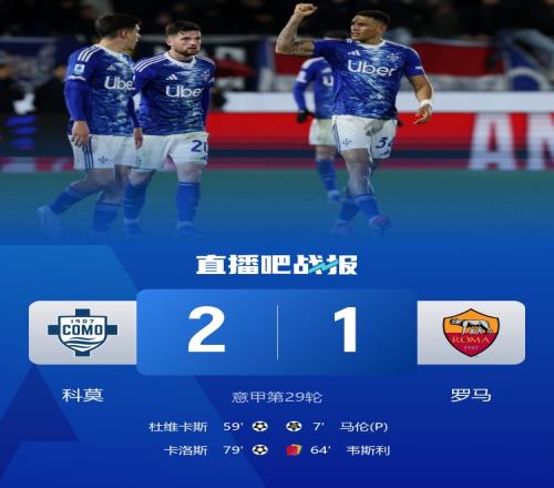沙拉維造點,馬倫點射閃擊,杜維卡斯推射扳平,韋斯利兩黃一紅被罰下,卡洛斯補射反超比分,科莫四連勝升至第4。