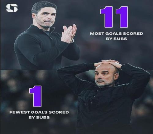 同時,曼城本賽季只通過替補球員打進了1球,是英超最少的。