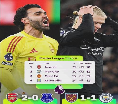 本輪聯(lián)賽之后,阿森納多賽一場已經(jīng)領(lǐng)先曼城多達9分!