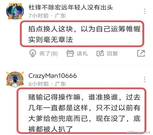 “掐點(diǎn)換人這塊,以為自己運(yùn)籌帷幄,實(shí)則毫無(wú)章法”;“誰(shuí)準(zhǔn)換誰(shuí),過(guò)去幾年一直都是這樣,只不過(guò)以前有大爹給他兜底而已,現(xiàn)在沒(méi)了,底褲都被人扒了”……