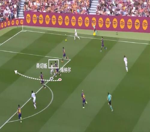 隨后的這次進攻中也是一樣的道理,萊萬接應馬丁直塞,這時候博納爾就往前插了,佩德里再一次處于靠后的位置。