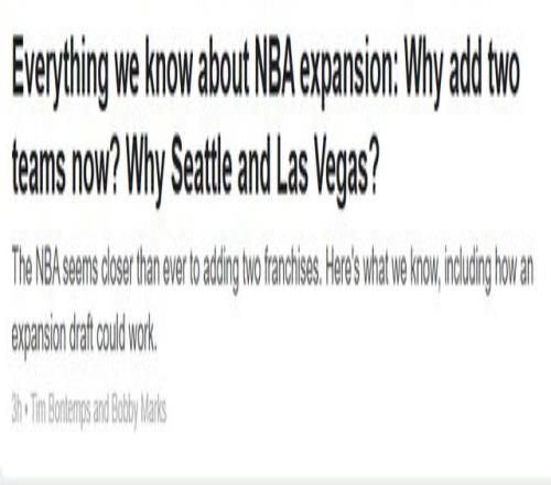 NBA擴軍預計進入倒計時,關(guān)于這項重要的運作,球迷也有不少疑問。ESPN撰文詳細解讀,一文讓你讀懂NBA擴軍的方方面面,具體如下——