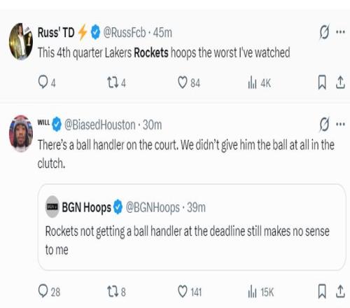 美媒:火箭第四節(jié)VS湖人的比賽是我見(jiàn)過(guò)最糟糕的一場(chǎng)。