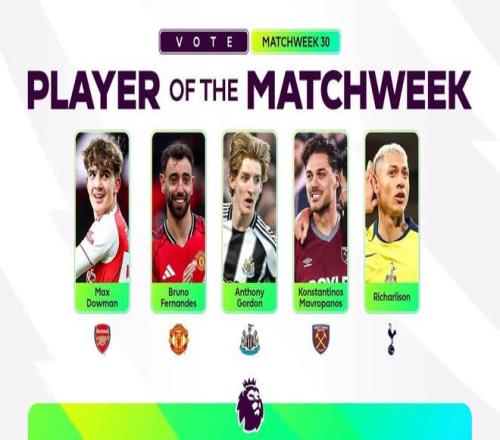 北京時間3月17日,英超官方公布了第30輪比賽中的最佳球員候選名單,其中道曼、B費、戈登、馬夫羅帕諾斯、里沙利松在列。