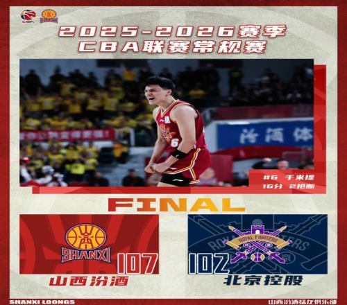 北京時間2026年3月17日19:35,2025-2026賽季常規(guī)賽第27輪繼續(xù)進(jìn)行,山西汾酒主場迎戰(zhàn)北京控股。兩隊歷史上共交手23次,山西汾酒13勝10負(fù),上賽季兩隊交手2次,山西汾酒1勝1負(fù)。本場比賽,山西隊上半場發(fā)揮出色,全隊用積極的態(tài)度建立起大比分領(lǐng)先優(yōu)勢,下半場有所松懈,防守注意力不夠集中,對籃板球的保護(hù)做得也不夠好,給了對手太多追分機(jī)會,需繼續(xù)總結(jié)。最終全場比賽結(jié)束,山西汾酒107:102戰(zhàn)勝北京控股。