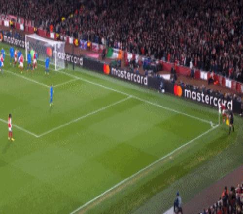 第8分鐘,薩卡開出角球,加布里埃爾頂在肩膀上出了底線
