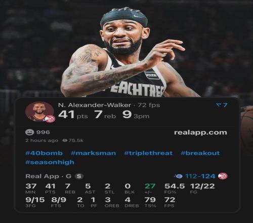 老鷹有一名球員的進步幅度堪稱神速,即雷霆球星亞歷山大的表弟亞歷山大-沃克,后者最近對陣魔術(shù)比賽投籃21中12,其中三分14中9狂轟生涯新高的41分外加7板5助2斷,正負值+27。