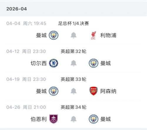 緊接著曼城在英超聯(lián)賽將客戰(zhàn)切爾西,4月19日迎來(lái)與阿森納的“天王山戰(zhàn)”。