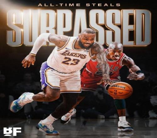 詹姆斯生涯搶斷總數來到2892個,超越喬丹升至NBA歷史第四