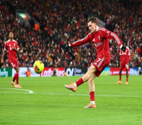 比賽開打,斯洛特鼓舞起到作用,他們來到比賽狀態(tài)極快反倒是加拉塔薩雷有點蒙。第26分鐘的,麥卡利斯特給出了角球機會,索博斯洛伊中路跟進之后推射,就此,利物浦1-0,總比分1-1,雙方回歸到了這一樣的起點上,比賽再次歸零了。