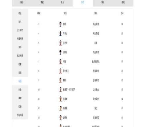 中超2輪過后,李昊就已累計完成11次撲救,其中不乏多次精彩神撲,高居撲救榜第二位。
