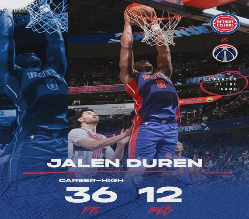 如今隨著坎寧安無限期休戰(zhàn),活塞核心中鋒杜倫將扛起重任,這位22歲猛男,本賽季至今場均出戰(zhàn)27.8分鐘就能貢獻(xiàn)19分10.6板1.7助,投籃命中率64.2%高居聯(lián)盟第三,同樣在今年入選了全明星陣容。