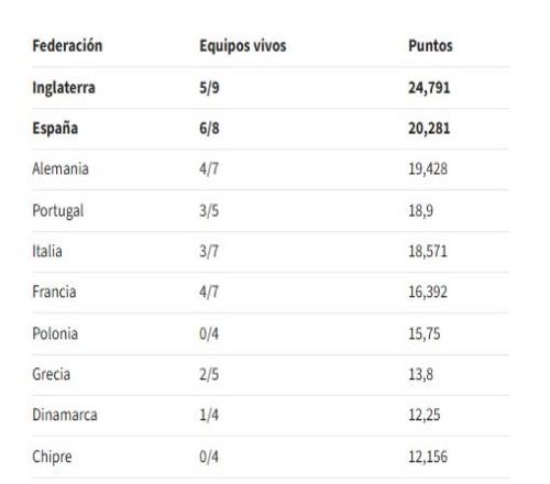 塞爾塔或者貝蒂斯必須有一隊(duì)拿下歐聯(lián)杯冠軍。這樣,他們就有了5個(gè)歐冠基礎(chǔ)名額(4個(gè)常規(guī)+1個(gè)系數(shù)獎(jiǎng)勵(lì)),再加上歐聯(lián)杯冠軍帶來的1個(gè)歐冠席位。