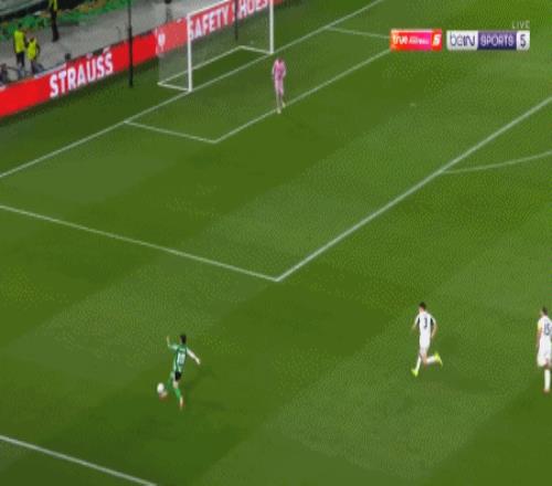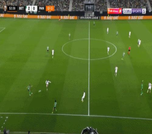 第45+1分鐘,阿姆拉巴特外圍一腳世界波破門將比分?jǐn)U大,貝蒂斯2-0