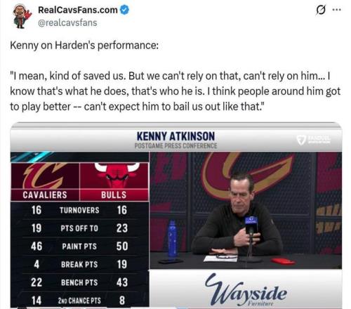 因此哈登也成為騎士隊贏球封面人物,騎士官方賽后專門發(fā)文稱贊到:“大胡子在芝加哥大顯身手?!?/p>