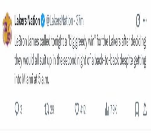 詹姆斯談到這場勝利直言來之不易,因為全隊是凌晨5點從邁阿密出發(fā)的,背靠背第二場賽前決定全員出戰(zhàn)。