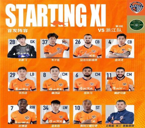 浙江隊陣型為352:門將是趙博,三中衛(wèi)是隊長波西諾洛,劉浩帆和徐俊馳。前場:米特里策、孫國文打兩個邊前衛(wèi)。樸鎮(zhèn)燮、托利奇和鮑盛鑫組成三中場。前鋒是王鈺棟和瓜里拉帕。