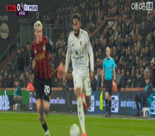 中場休息后,這位曼聯(lián)球星展現(xiàn)出一次極為精妙的第一腳觸球,希門尼斯在對位中完全無法跟上馬泰烏斯-庫尼亞。庫尼亞觸球后切入伯恩茅斯禁區(qū),希門尼斯拉拽了這位巴西國腳的球衣,導(dǎo)致他倒地,為曼聯(lián)贏得點球。