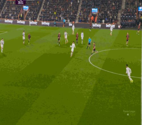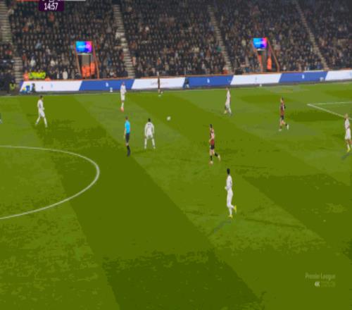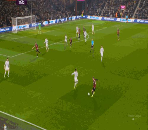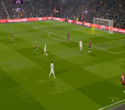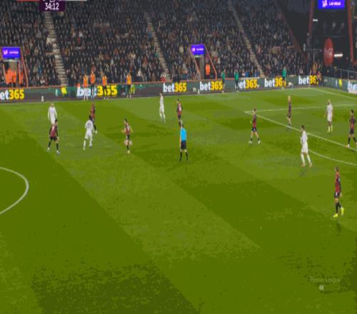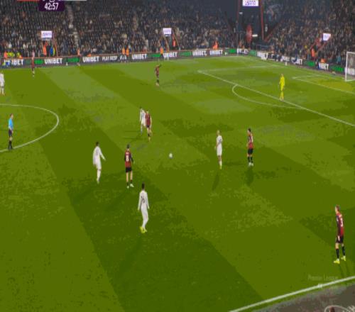 但整體來說,曼聯(lián)還是占據(jù)了上風(fēng),并且形成了左右兩路的優(yōu)勢局面,反觀伯恩茅斯,在主場這個優(yōu)勢面前,只在22分鐘前后打出了一波進攻,分別捕捉了布魯諾和達洛特的失誤,其余大部分時候都難有作為: