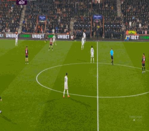 本場比賽,一周一賽的曼聯(lián)沒有改變首發(fā)陣容和思路,伯恩茅斯這邊也是一樣,僅在個別位置進行了細微的調(diào)整,整體思路并不會發(fā)生根本性的變化,所以開場一上來,伯恩茅斯的逼搶就來了: