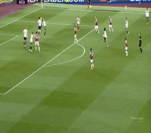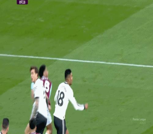 所以進入30分鐘區(qū)間,也就是靠跑動拉強度的伯恩茅斯多少該出現(xiàn)下滑的時候,曼聯(lián)的威脅進攻逐漸上線,門前真正的好機會開始出現(xiàn),第35分鐘這次后點的攻門,其實應(yīng)該把握住的: