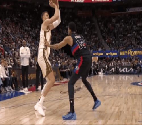 除了傷退以外波神在場其實還有一個尷尬鏡頭,第一節(jié)最后時刻他在弧頂和波杰姆斯基配合完伸手要球,但后來直接被缽缽雞無視,后者寧愿頂著對手干拔壓哨都不肯傳位置更好的他。