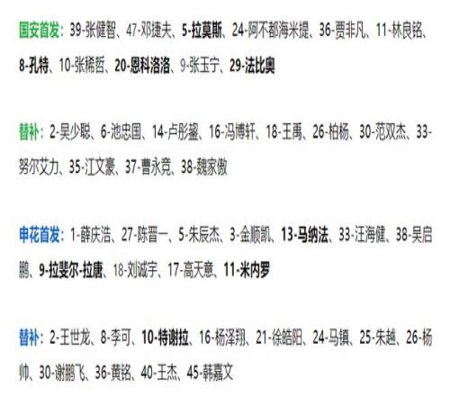 賽前雙方首發(fā):法比奧領(lǐng)銜國安四外援出戰(zhàn),張玉寧、張健智、鄧捷夫先發(fā),塞爾吉尼奧、王剛?cè)标嚕昊▌t是三外援先發(fā),分別是米內(nèi)羅、拉唐、馬納法,另外,吳曦、蓋伊因傷沒有進入大名單。