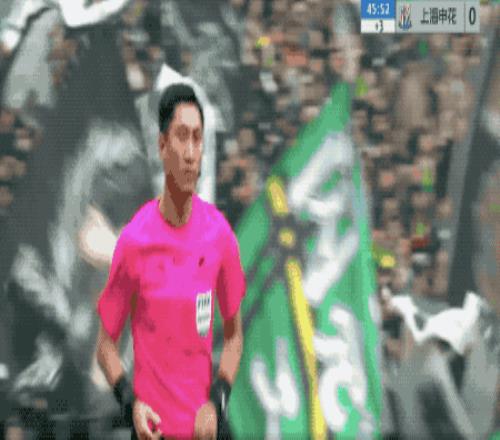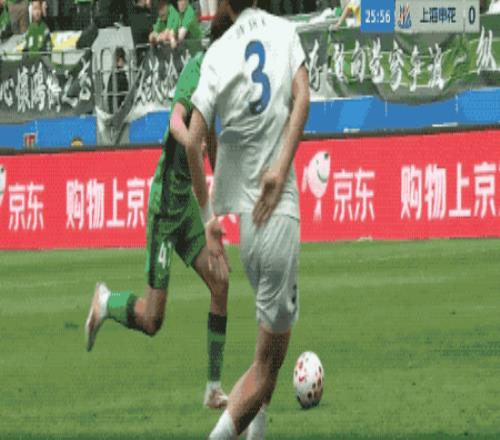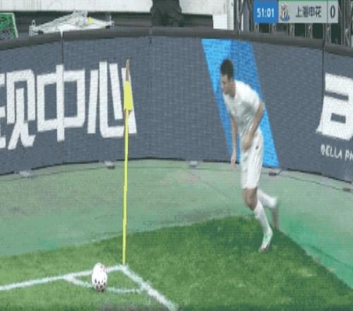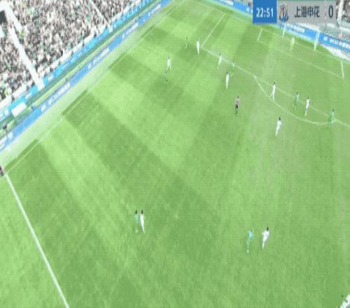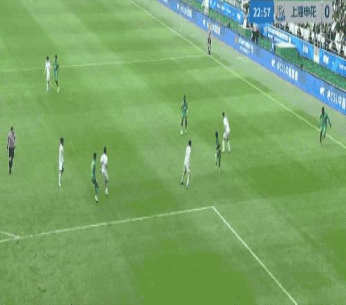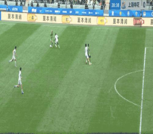 第50分鐘,申花的角球幾經(jīng)波折終于開出,陳晉一在賈非凡的干擾下回頭望月,皮球擊中邊網(wǎng)。