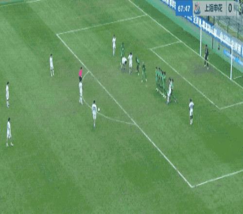 3分鐘后,申花獲得前場位置相當(dāng)好的任意球,陳晉一圓月彎刀,皮球直掛死角。憑借這一世界波,兩隊回到同一起跑線。