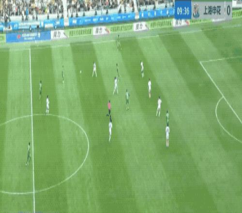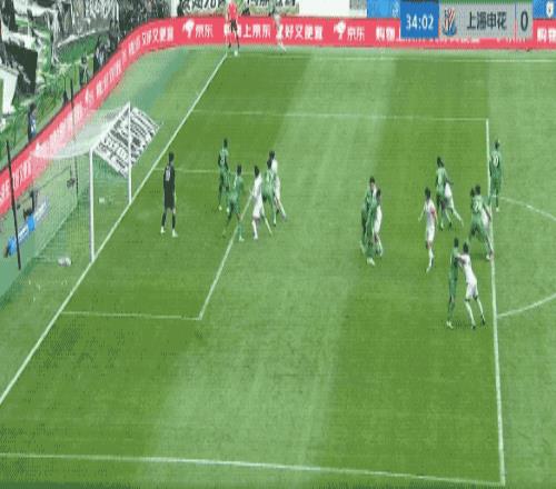 第35分鐘,申花開出角球,朱辰杰頭球擺渡,拉唐跑過了,錯失良機。