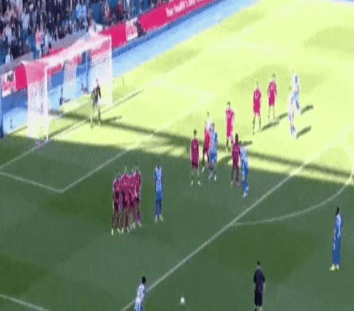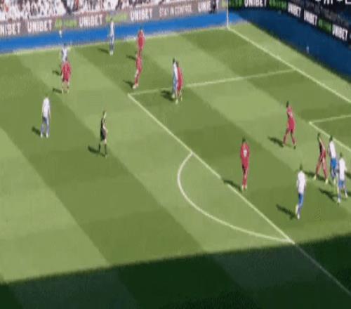第14分鐘,布萊頓進(jìn)球了。他們一次前場(chǎng)任意球的精妙傳遞:維爾貝克高高躍起將球頂進(jìn)。1-0!