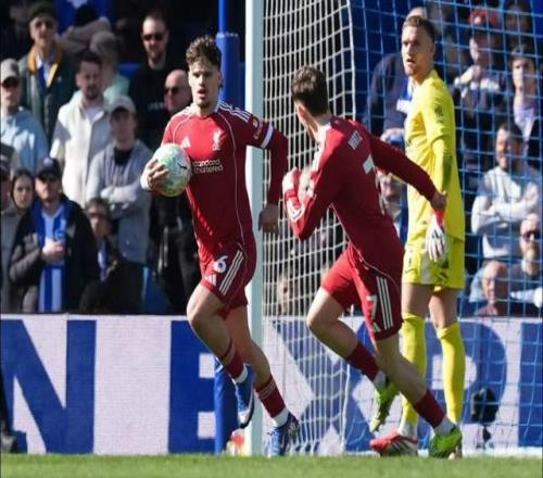 第30分鐘,利物浦將比分扳平,鄧克出現(xiàn)失誤,凱爾凱茲直接面對(duì)門將,將球打進(jìn)。1-1!
