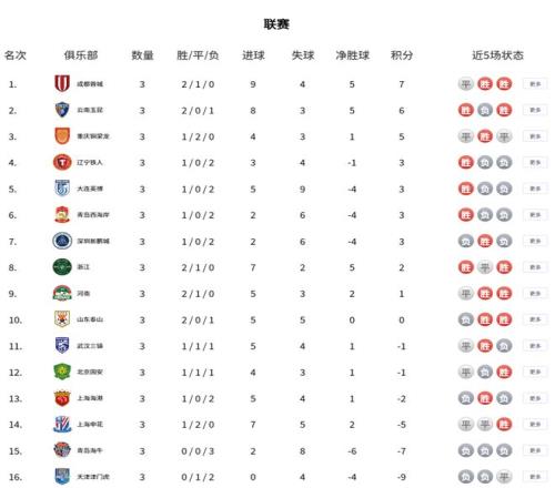 北京時(shí)間3月21日,中超第3輪8場(chǎng)角逐全部結(jié)束。3輪戰(zhàn)罷已經(jīng)沒有全勝的球隊(duì),不過仍有5隊(duì)保持不敗,分別是成都蓉城、重慶銅梁龍、浙江、河南和上海申花。