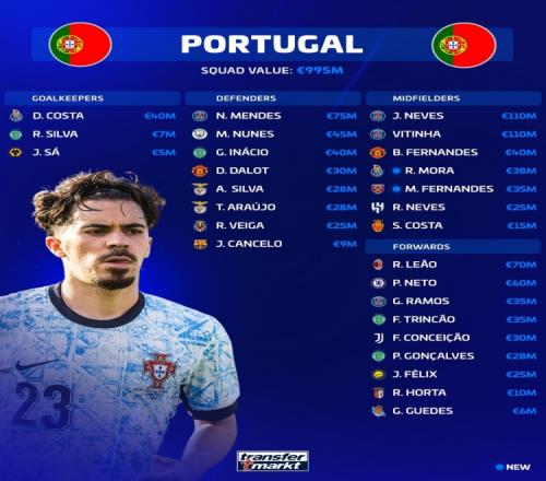 葡萄牙隊(duì)本期名單球員德轉(zhuǎn)身價(jià)