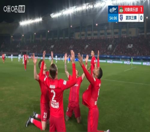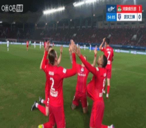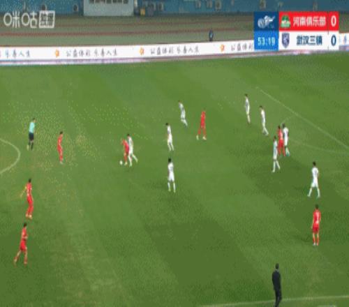 體育播報03月21日宣 中超第3輪,河南vs武漢三鎮(zhèn)。比賽第54分鐘,河南終于打破僵局,鐘義浩傳中,古斯塔沃高高躍起頭槌,方鏡淇奮力撲了一下,還是沒能阻止球進網(wǎng),比分變?yōu)?-0。