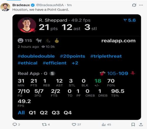 關(guān)鍵拋投+助攻新高!謝潑德23+14+0失誤閃光休媒:覓得控衛(wèi)答案