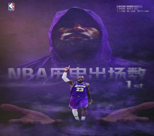 詹姆斯生涯總出場數(shù)來到1612場,超越羅伯特-帕里什,獨占NBA歷史第一。