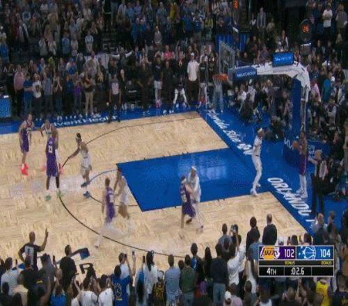 5.5秒領(lǐng)先2分握有球權(quán),魔術(shù)贏球形勢一片大好,但他們出現(xiàn)了關(guān)鍵的邊線球失誤,班凱羅被詹姆斯切球,裁判將球權(quán)判給湖人。魔術(shù)選擇用最后一次暫停進(jìn)行挑戰(zhàn),但裁判經(jīng)過漫長的錄像回放后依然無法找到改判證據(jù),湖人獲得了4.7秒絕殺的機(jī)會(huì)。