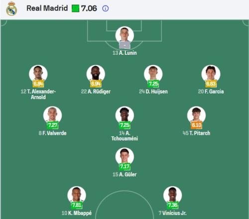 后防線上,庫(kù)爾圖瓦因傷缺陣至少一個(gè)月,盧寧將首發(fā)出戰(zhàn),這將是烏克蘭門將第四次出戰(zhàn)馬德里德比。呂迪格和懷森的中衛(wèi)組合已連續(xù)三場(chǎng)首發(fā),特倫特鎮(zhèn)守右路,傷愈歸來(lái)的卡雷拉斯出任左后衛(wèi)。中場(chǎng)方面,巴爾韋德、楚阿梅尼、皮塔奇、居萊爾預(yù)計(jì)首發(fā),貝林厄姆可能替補(bǔ)待命。