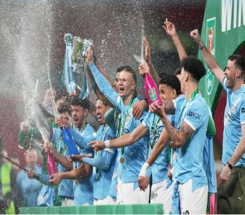 這是瓜迪奧拉執(zhí)教生涯贏得的第五座英格蘭聯(lián)賽杯。2018年他首次在英格蘭捧起這座獎(jiǎng)杯,隨后更是史無(wú)前例地完成了四連冠。擊敗阿森納后,他又把第五枚聯(lián)賽杯冠軍獎(jiǎng)牌收入囊中。