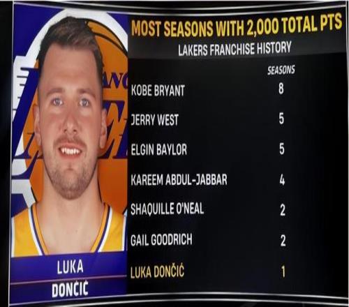 就在今天東契奇在對陣活塞的比賽中,砍下32分7籃板6助攻,數(shù)據(jù)依舊很亮眼但是最后時刻連續(xù)兩次錯失關(guān)鍵球,導(dǎo)致湖人輸給了坎寧安缺席的活塞隊,9連勝勢頭被終結(jié)!對于東契奇?zhèn)€人來說,剛剛加盟湖人的首個完整賽季都打出了超級表現(xiàn),完成了一項詹姆斯8年湖人生涯都沒有做到的壯舉!此役過后本賽季東契奇總得分來到2005分,成為湖人隊史上第七位達(dá)成此成就的球員,排在他前面的分別是科比(8次)、杰里·韋斯特(5次)、埃爾金·貝勒(5次)、賈巴爾(4次)、奧尼爾(2次)、古德里奇(2次)!