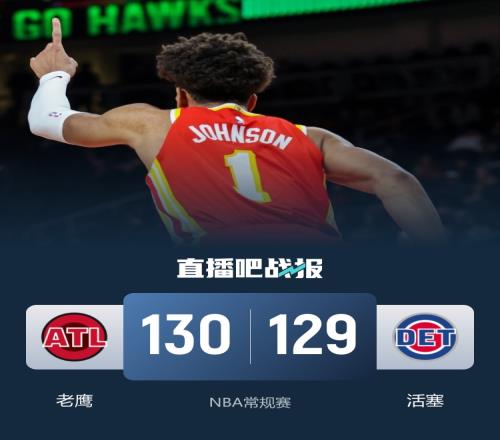 老鷹加時(shí)終結(jié)活塞4連勝杰倫約翰遜27+8+12杜倫失絕殺