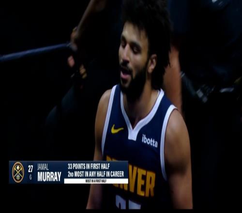 上半場,掘金后衛(wèi)賈馬爾·穆雷火力全開,打了19分鐘15投11中,三分9中6、罰球5中5砍下33分3籃板2助攻,正負(fù)值+15。