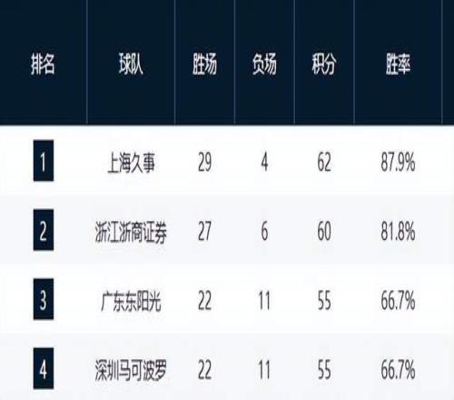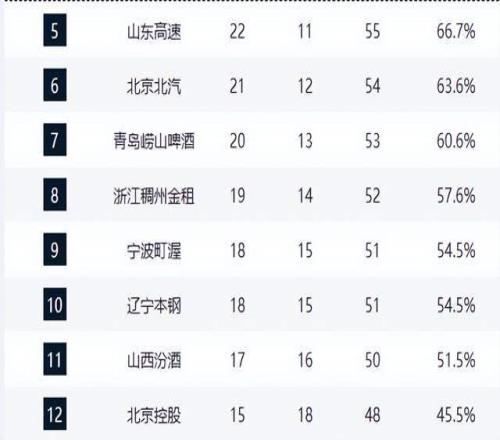 上海拉開差距,廣廈掉隊,廣東第3,黑馬第4,山東下滑,遼寧第10