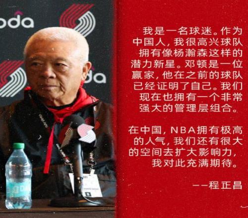 4月3日,波特蘭開拓者舉辦盛大的新聞發(fā)布會(huì),熊貓快餐老板,也是開拓者投資人程正昌表示:很高興球隊(duì)有楊瀚森這樣新星,我們會(huì)繼續(xù)擴(kuò)大NBA在中國(guó)的影響力!