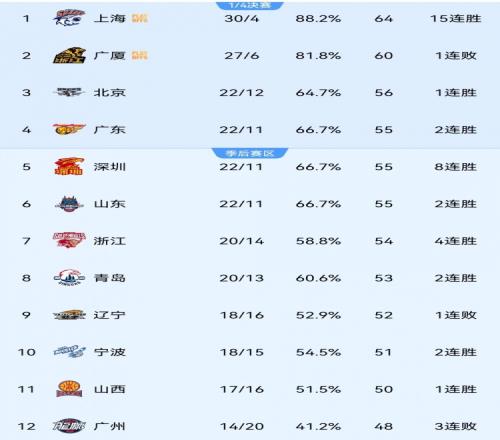 浙江隊贏了遼寧以后,cba前十一名的爭奪還微妙起來了,第三到第十一的勝場差距才4場球。后面的卡位戰(zhàn)可以說是場場關(guān)鍵啊,估計最后落位的爭奪會很激烈。
