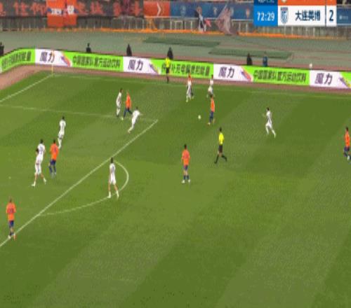 第27分鐘,斯坦丘罰球弧前沿撞墻二過(guò)一傳遞,毛偉杰斜插罰球區(qū)欲射門遭干擾,馬萊萊門前撿漏將球送入空門。馬萊萊打入本賽季中超第2球,大連英博海發(fā)1-0領(lǐng)先!
