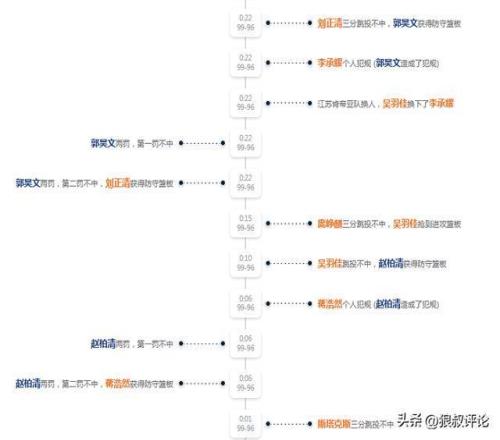第四節(jié)最后22秒,同曦99-96江蘇,劉正清強投三分不中,郭昊文獲得籃板球,李承耀提前犯規(guī),送郭昊文上罰球線,結果2罰不中。